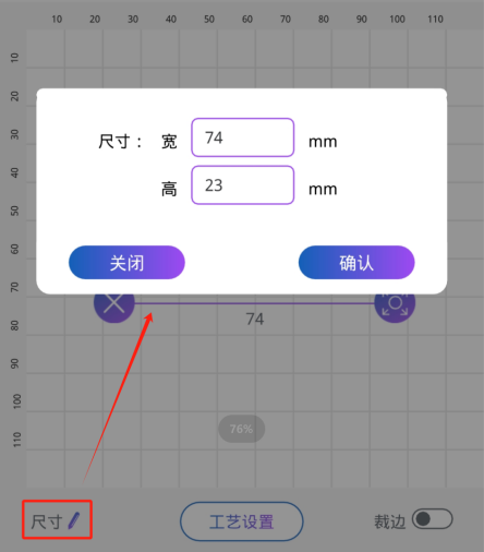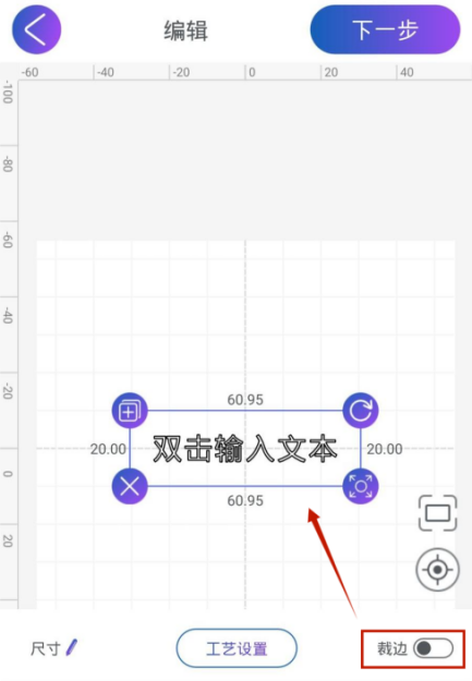 裁边:打开开关,对文字进行裁边,不保留文字边距,裁边的文字不能进行复制、删除、选择,但可以手动输入文字尺寸。